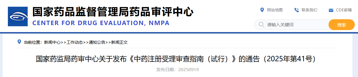 为进一步规范中药注册受理的形式审查要求,更好地指导和服务申请人,在国家药品监督管理局的部署下,药审中心组织修订了《中药注册受理审查指南(试行)》(见附件)。根据《国家药监局综合司关于印发药品技术指导原则发布程序的通知》(药监综药管〔2020〕9号)要求,经国家药品监督管理局审查同意,现予发布,自2025年10月15日起施行。