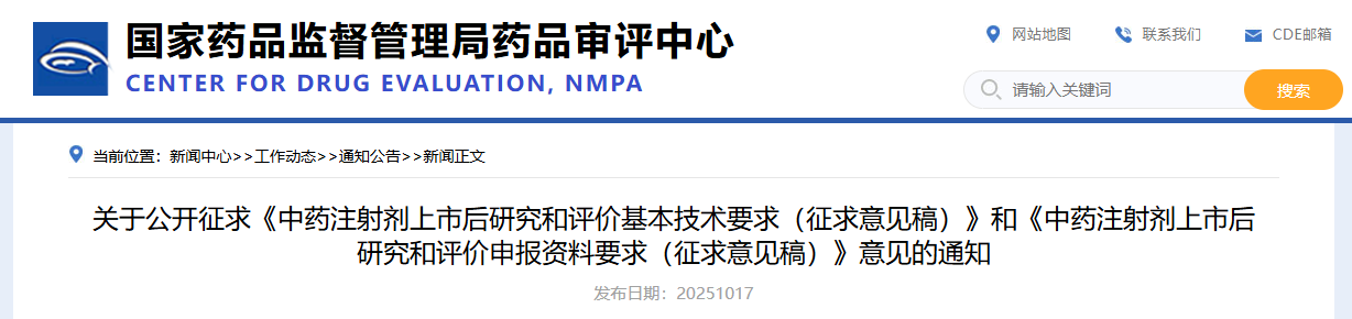 为落实国家药监局《关于进一步推进药品上市许可持有人加快开展中药注射剂上市后研究和评价工作的公告(征求意见稿)》要求,规范中药注射剂上市后研究和评价工作,药审中心结合已上市中药注射剂的实际情况,研究制定了《中药注射剂上市后研究和评价基本技术要求(征求意见稿)》和《中药注射剂上市后研究和评价申报资料要求(征求意见稿)》。
