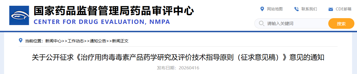 为进一步明确肉毒毒素类药物的药学技术要求,我中心基于审评实践及业界反馈意见起草了《治疗用肉毒毒素产品药学研究及评价技术指导原则(征求意见稿)》。