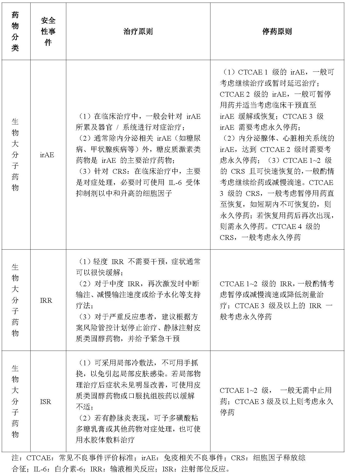 这些生物大分子药物治疗原则及停药原则根据AE的不同,采取的常见措施如下: